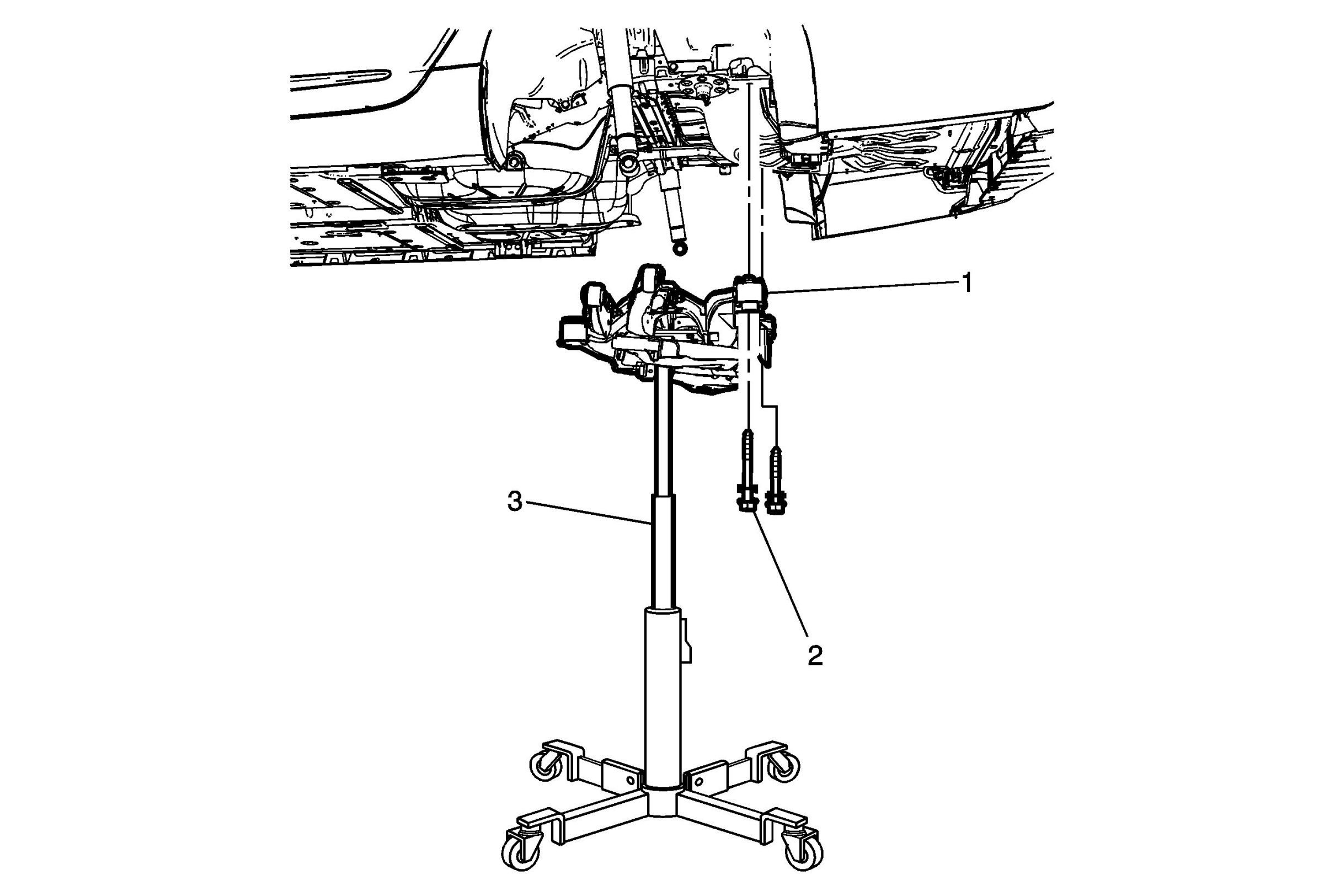 Note:Ensure that the rear suspension support is securely attached to the hydraulic jack stand.