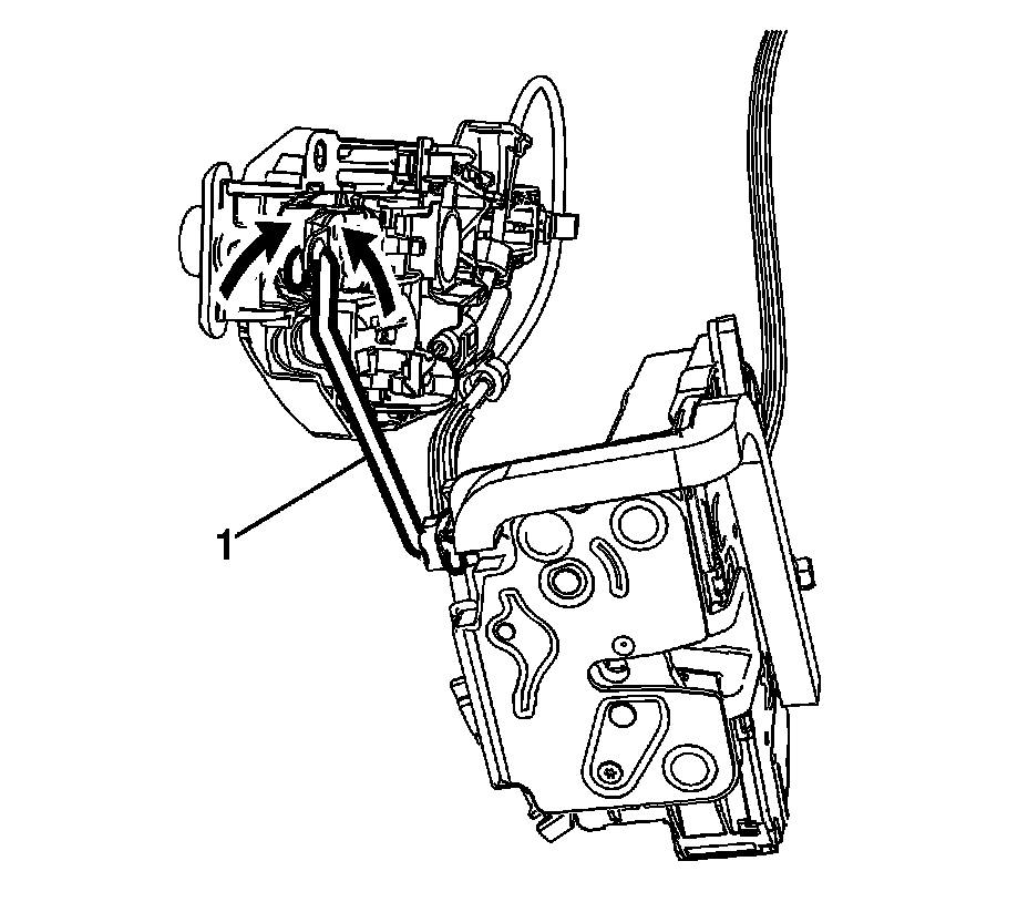 2. Disconnect the front side door lock cylinder rod (1) from the lock cylinder.