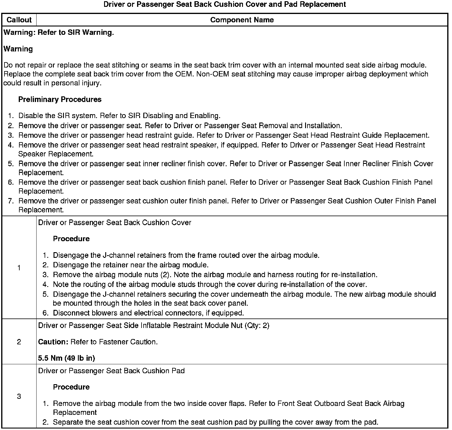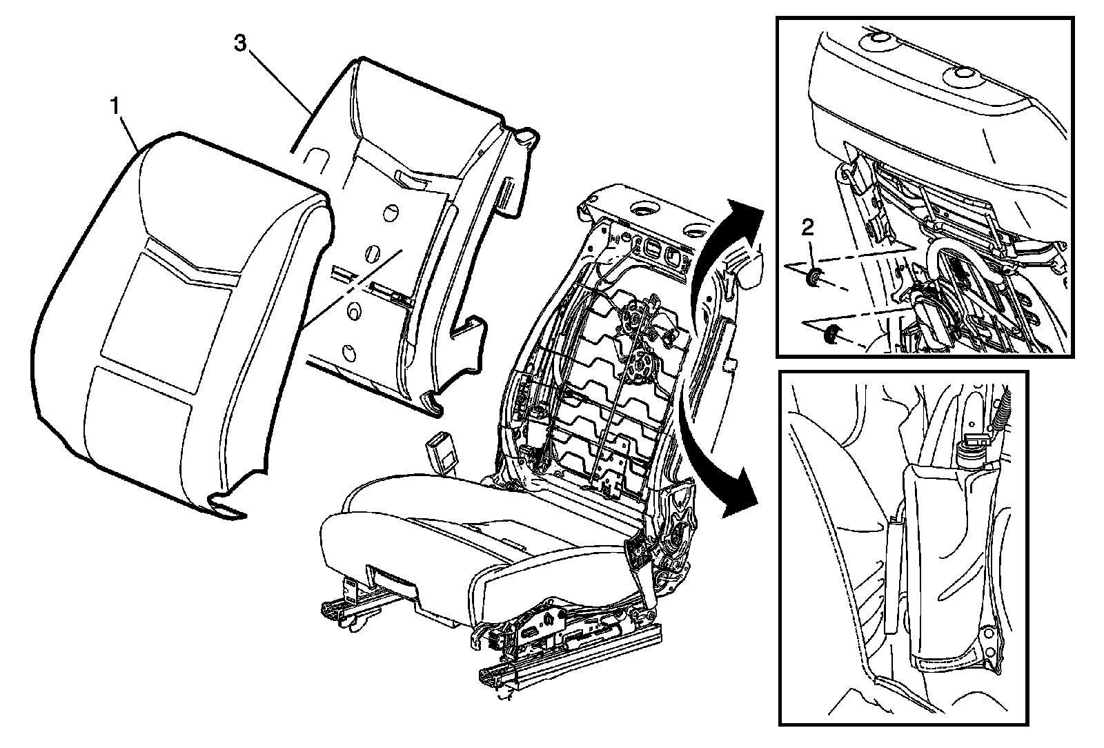 Driver or Passenger Seat Back Cushion Cover and Pad Replacement