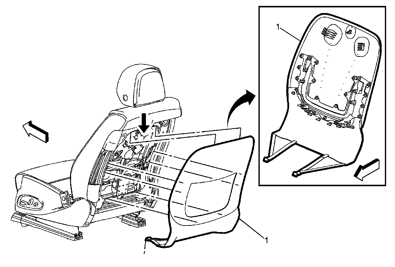 Driver or Passenger Seat Back Cushion Finish Panel Replacement
