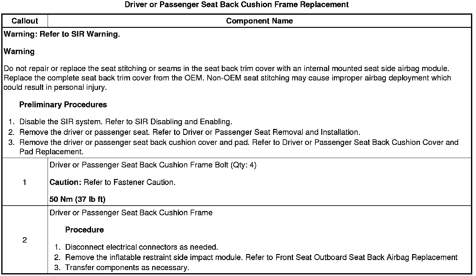 Driver or Passenger Seat Back Cushion Frame Replacement