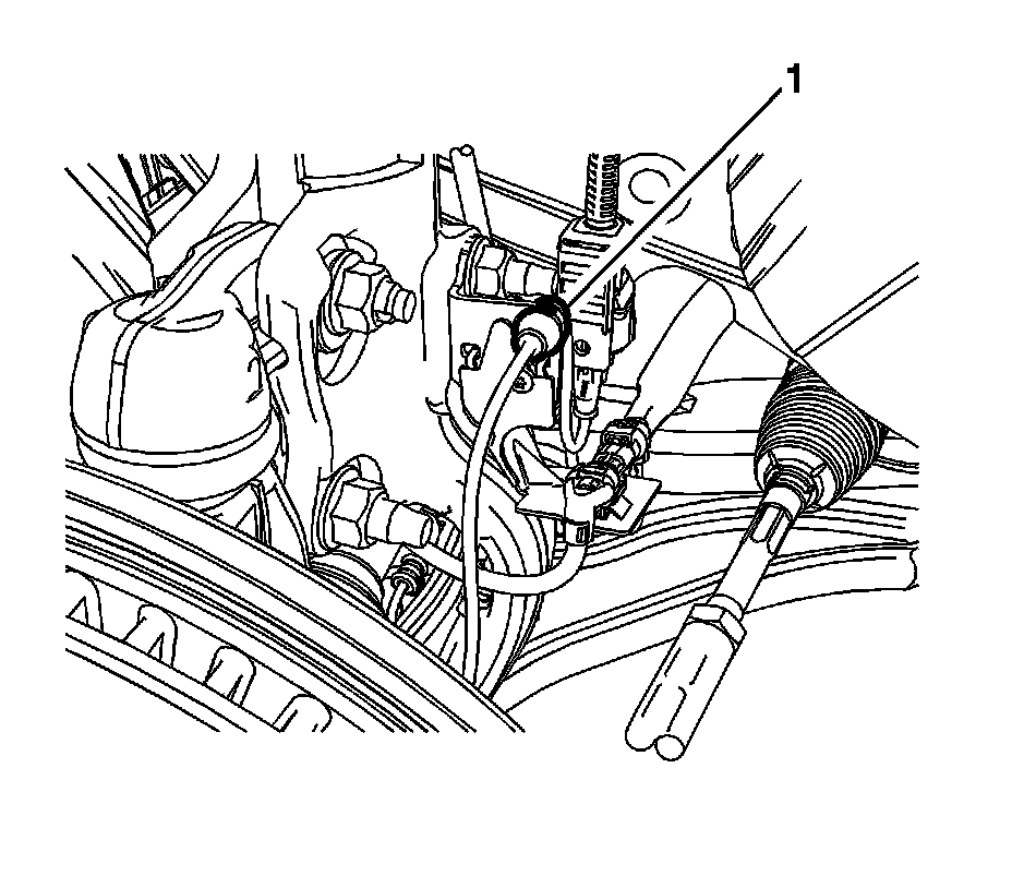 4. Release the wheel speed sensor harness grommet (1) from the strut bracket.