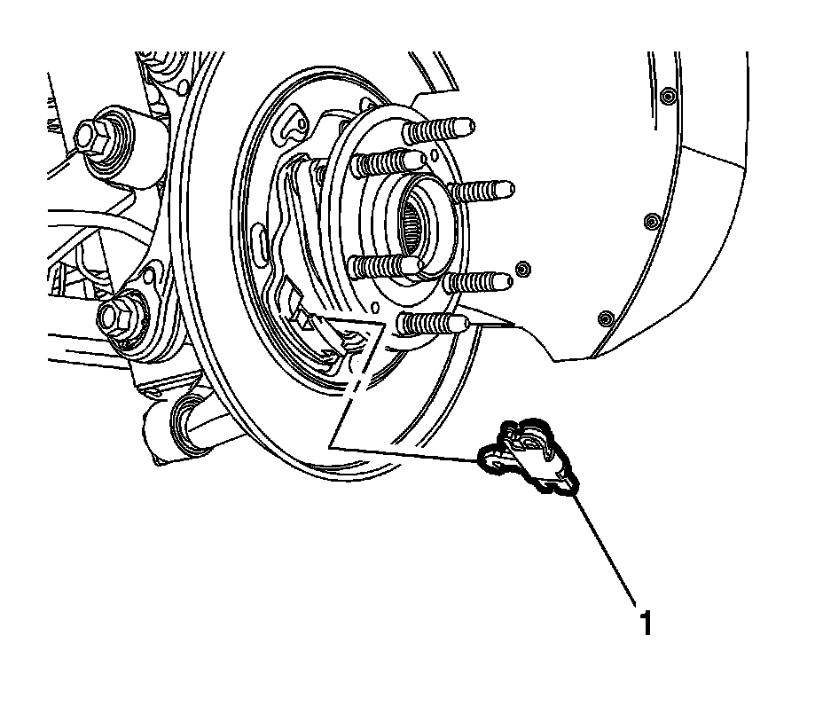 4. Remove the rear brake rotor. Refer to Rear Brake Rotor Replacement (J64) Rear Brake Rotor Replacement (J64)Rear Brake Rotor Replacement (J55) Rear Brake Rotor Replacement (J55).