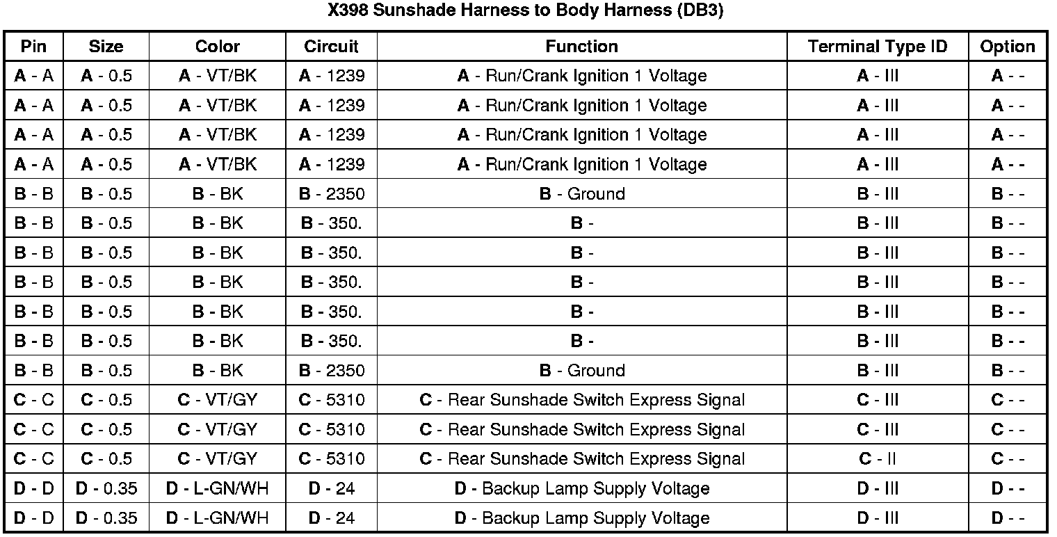 X398 Sunshade Harness to Body Harness (DB3)