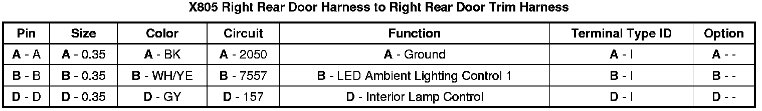X805 Right Rear Door Harness to Right Rear Door Trim Harness