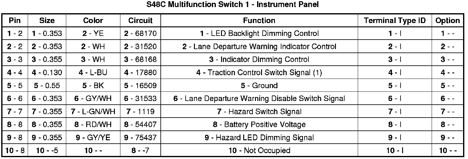 S48C Multifunction Switch 1 - Instrument Panel