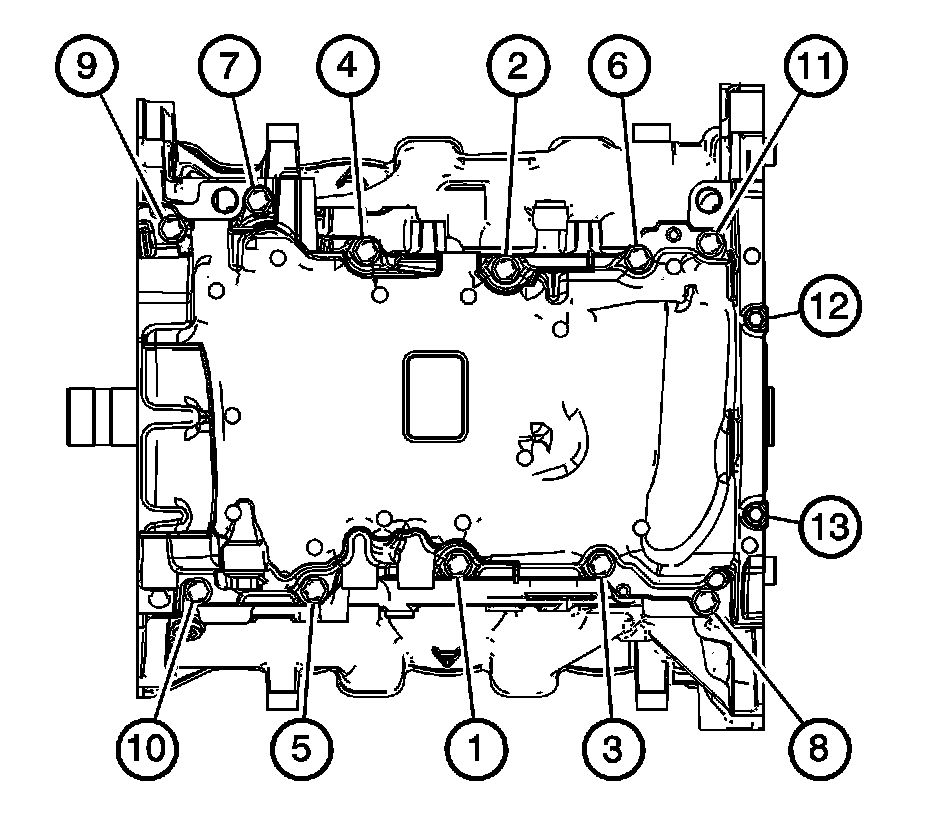 7. Tighten the oil pan bolts in sequence.