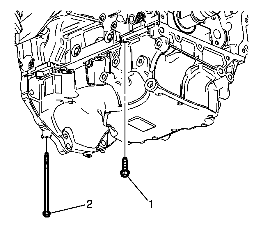 7. Remove the oil pan bolts (1 and 2).