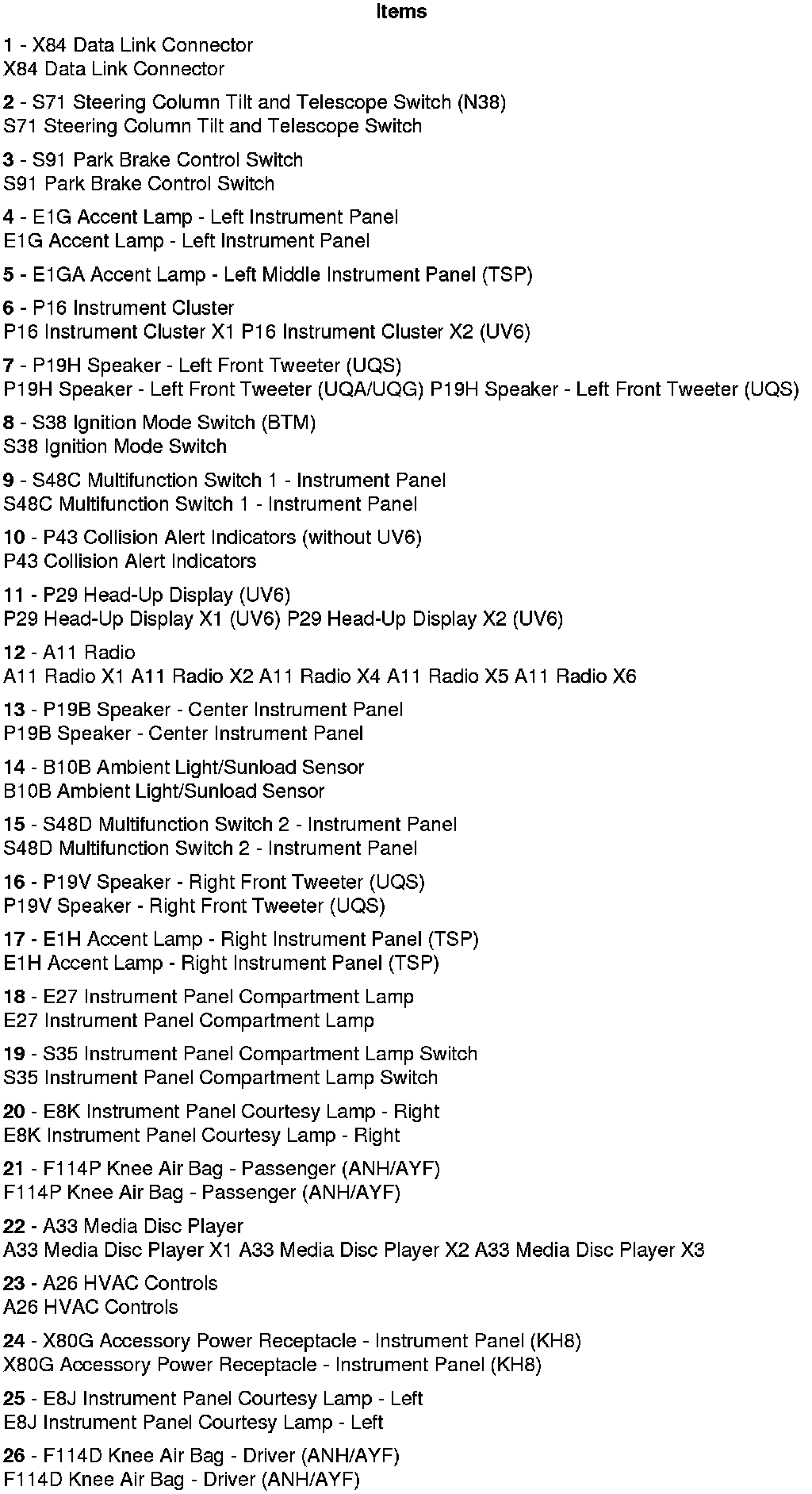 Instrument Panel Components - Front