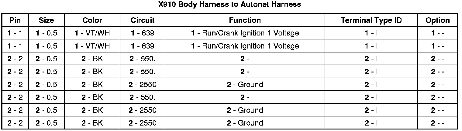 X910 Body Harness to Autonet Harness