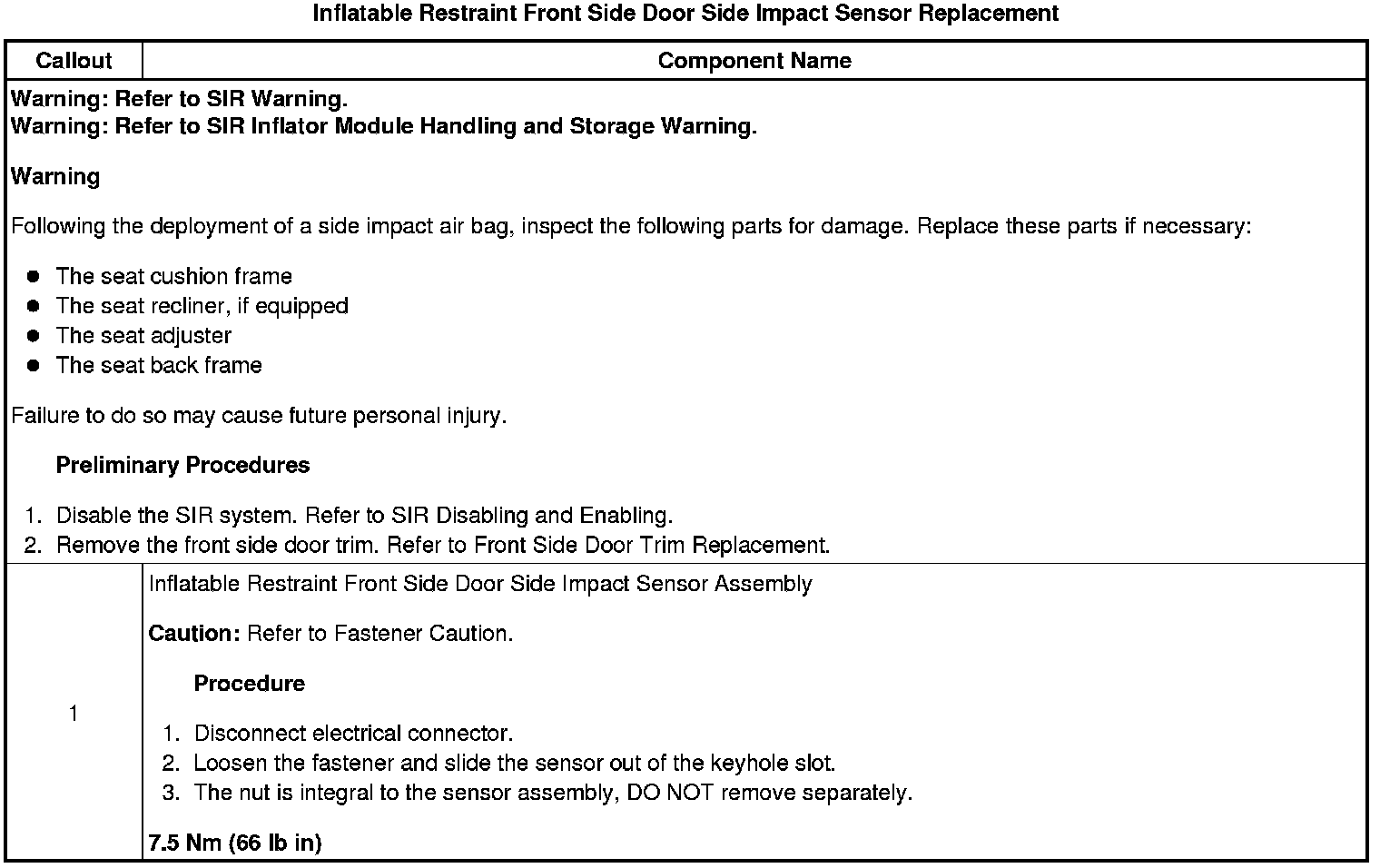 Inflatable Restraint Front Side Door Side Impact Sensor Replacement
