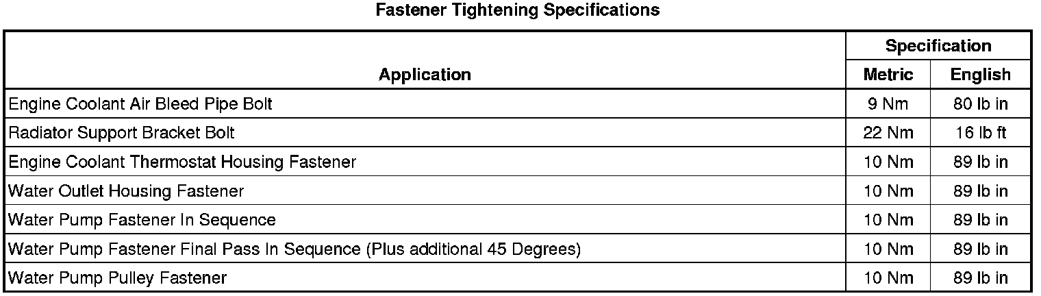 Fastener Tightening Specifications