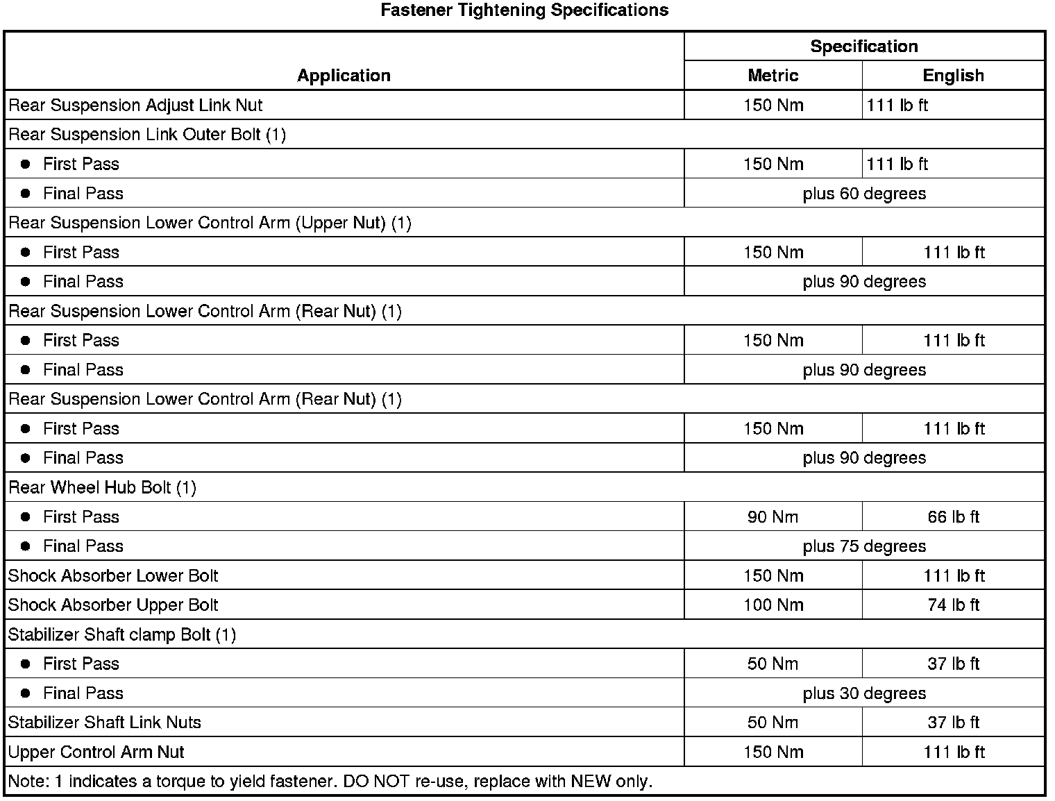 Fastener Tightening Specifications