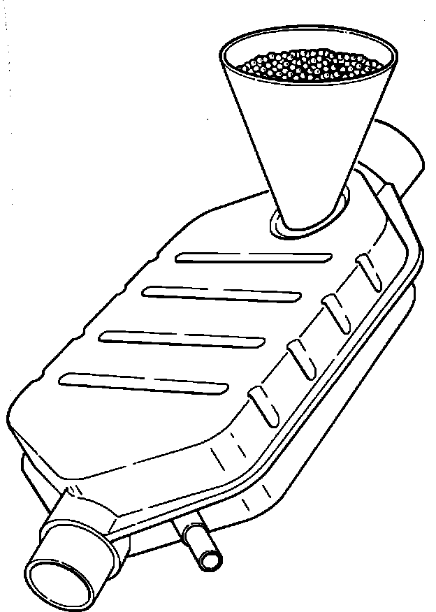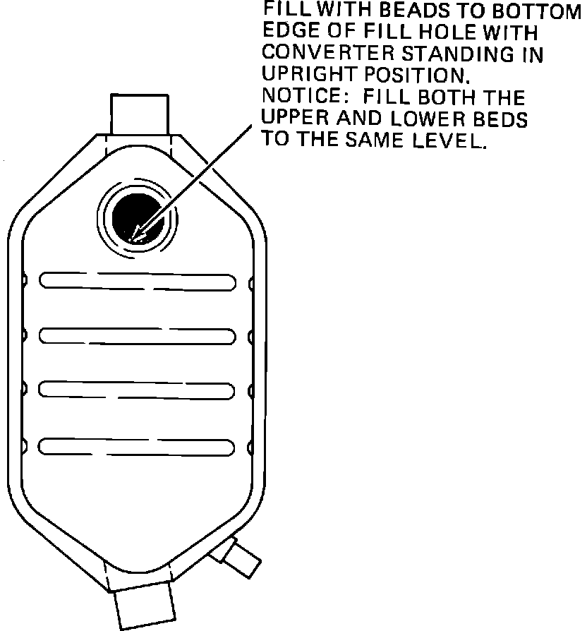 NOTICE: If upper bed is void or near void (a cup or less) of catalyst beads, the converter is considered damaged (internally) or expanded. Catalyst beads found in internally damaged or expanded converters are not to be used in new converters. These beads can be returned via exchange program described in WDDGM Bulletin ID No. 80-93.