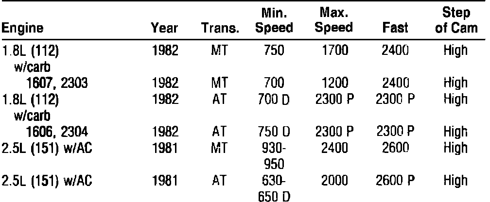 Idle Speed W/Computer Control Specifications - Carbureted: