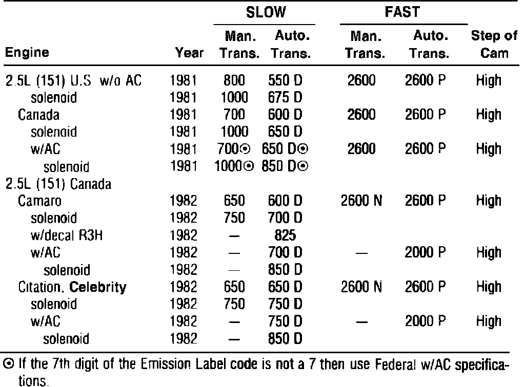 Idle Speed W/O Computer Control - Specifications: