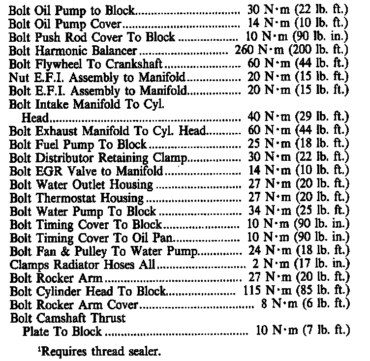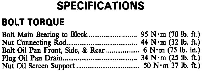 Torque Specifications: