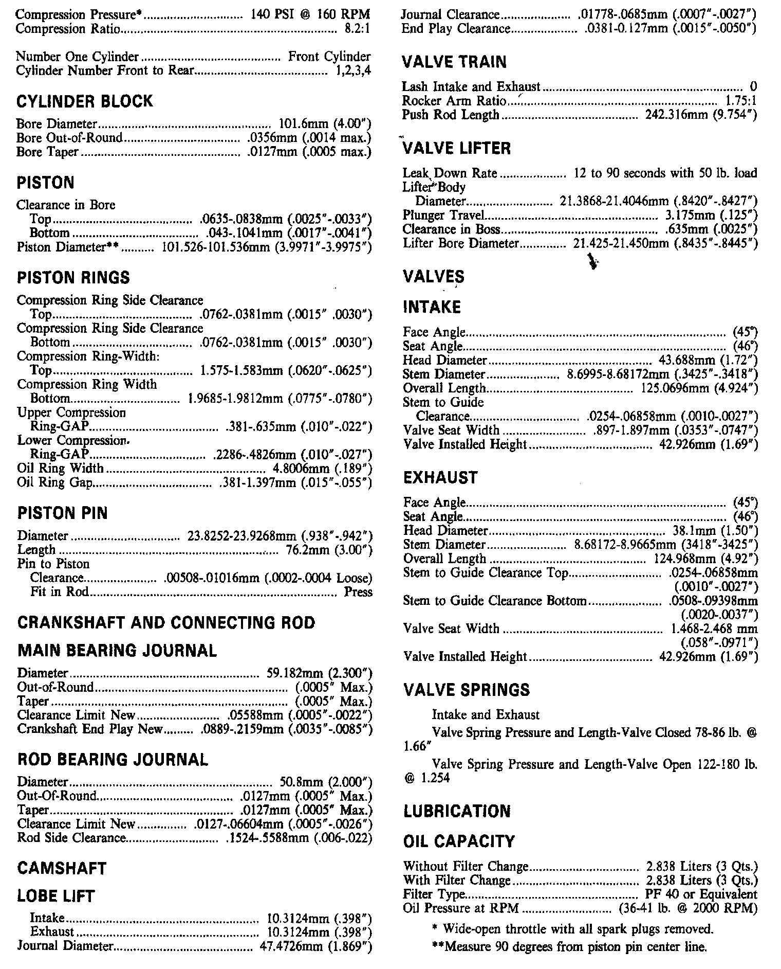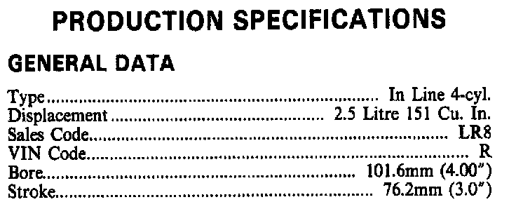 Engine Specifications: