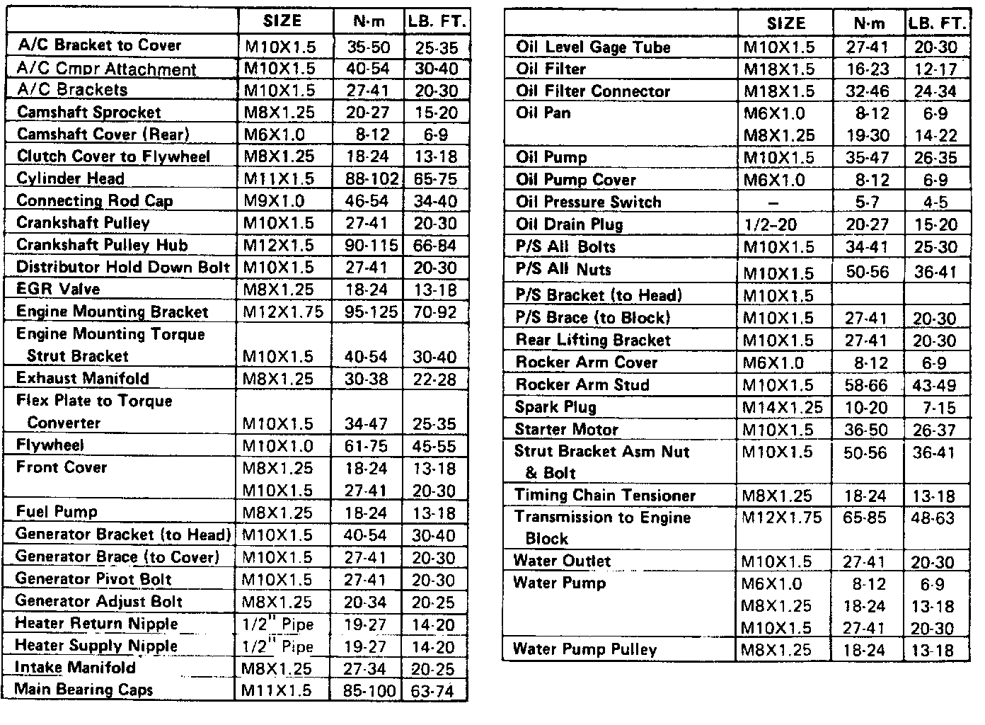Torque Specifications: