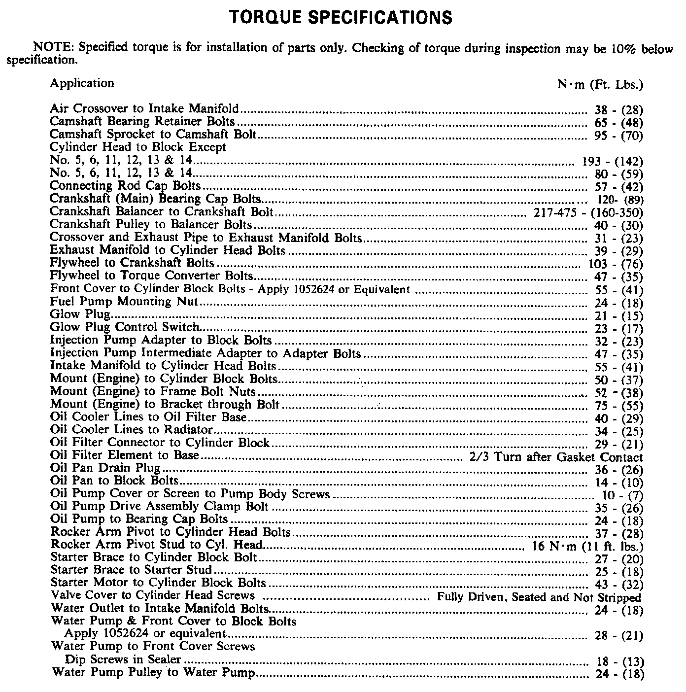 Torque Specifications: