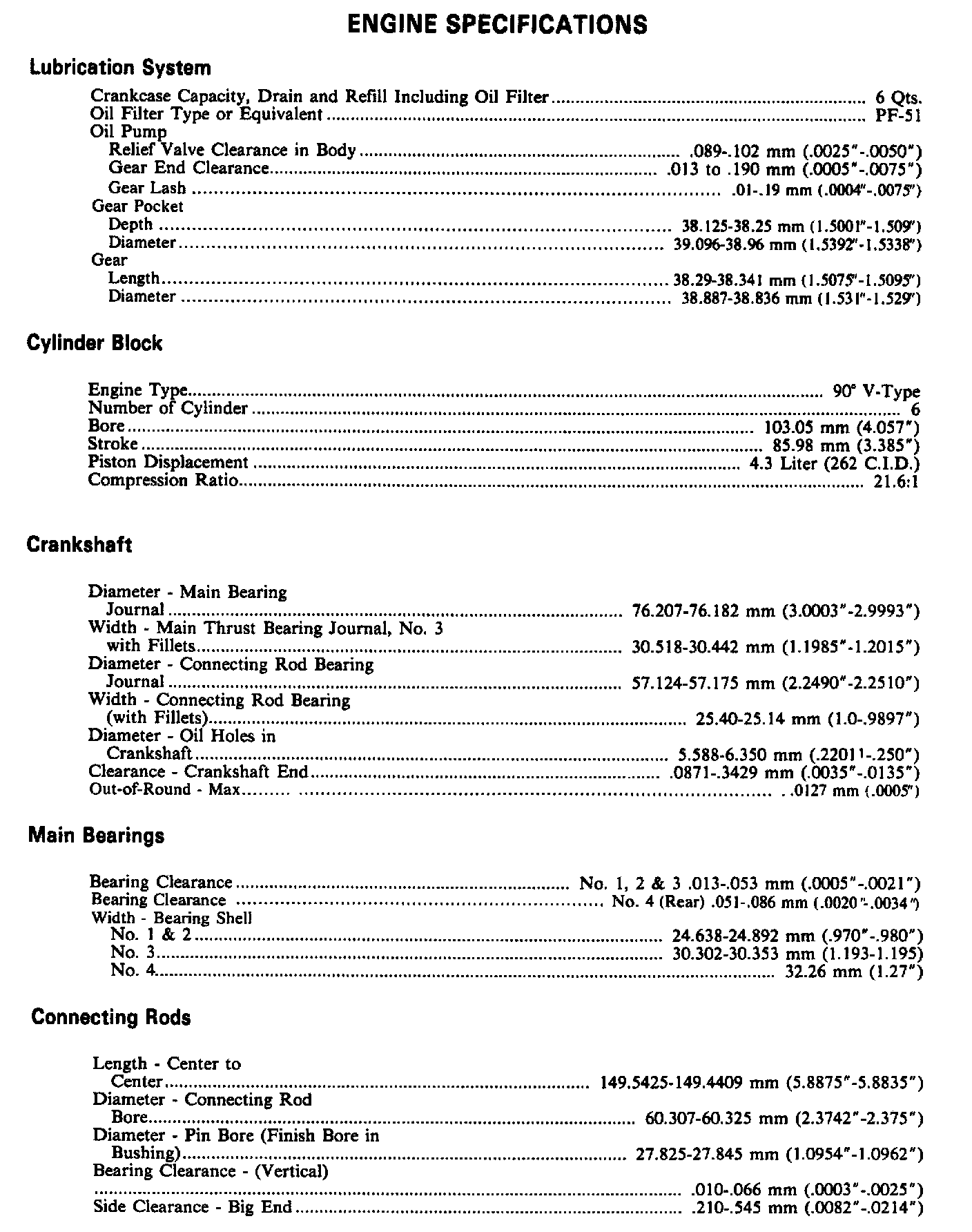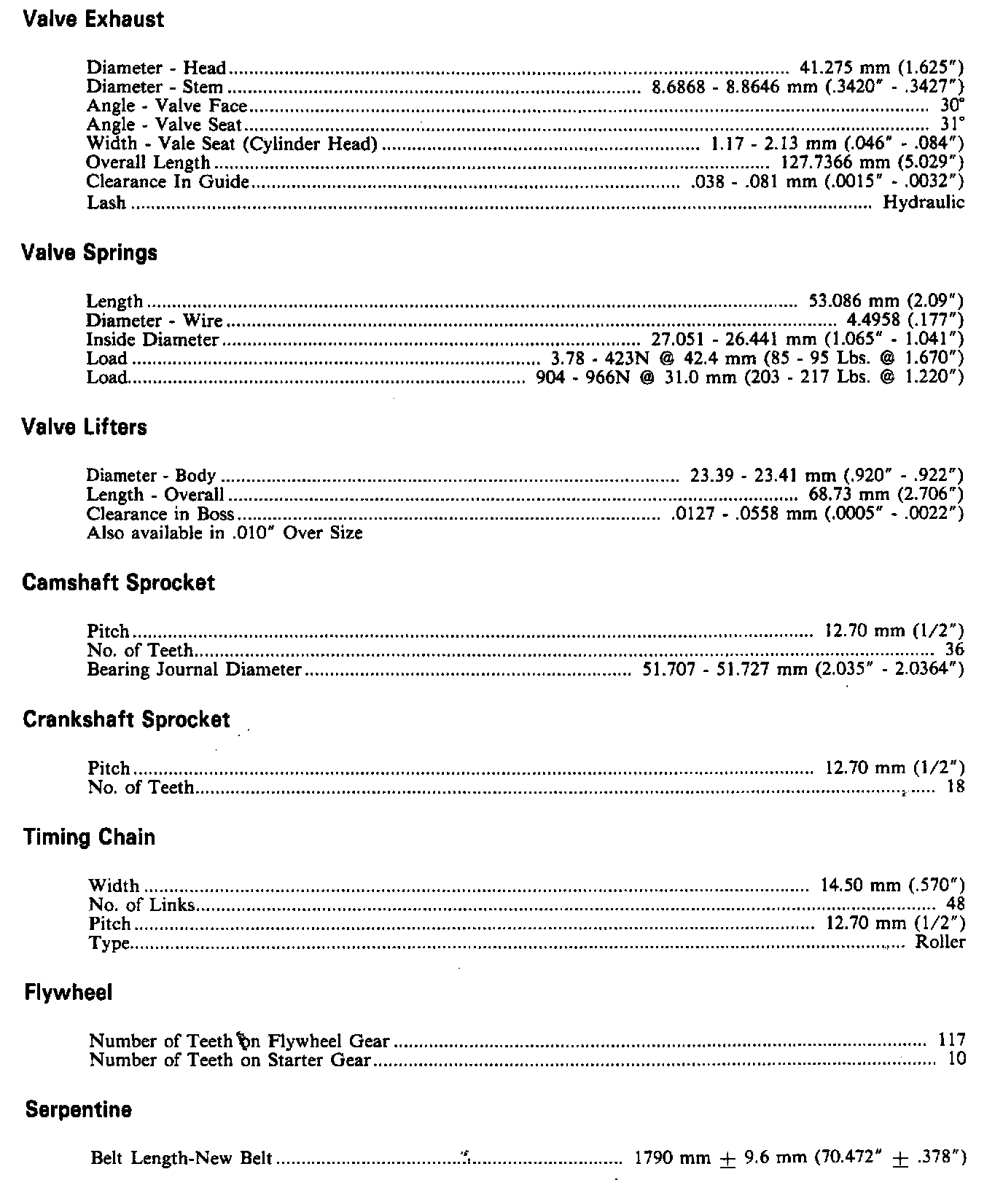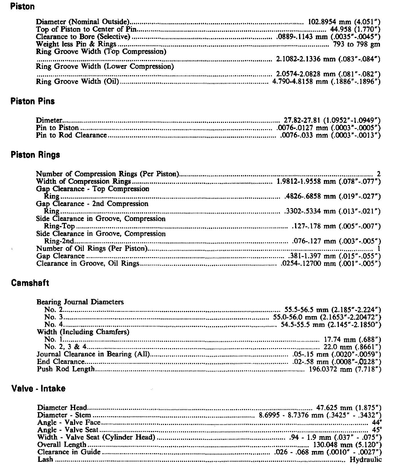 Continued Engine Specifications: