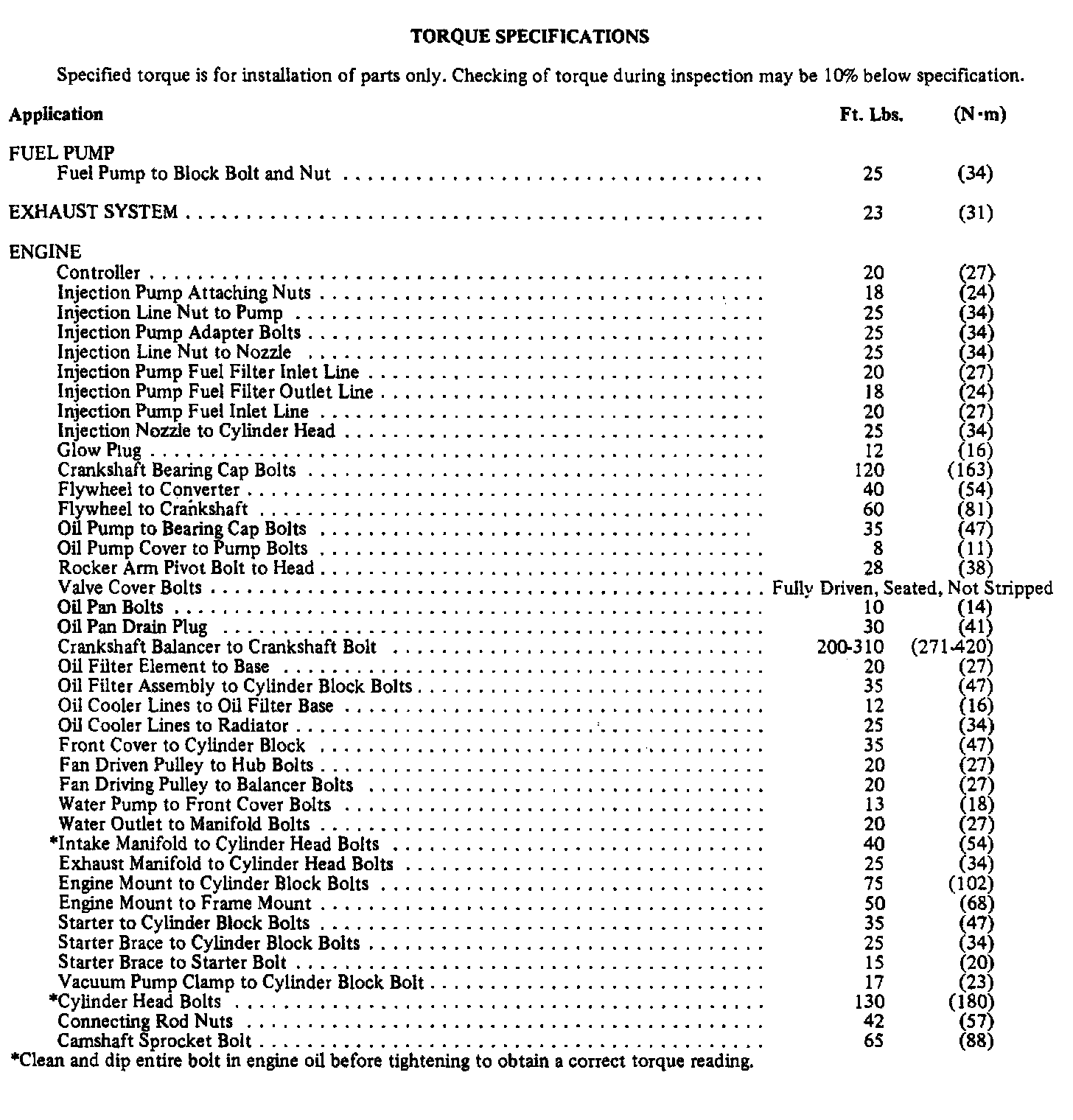 Torque Specifications: