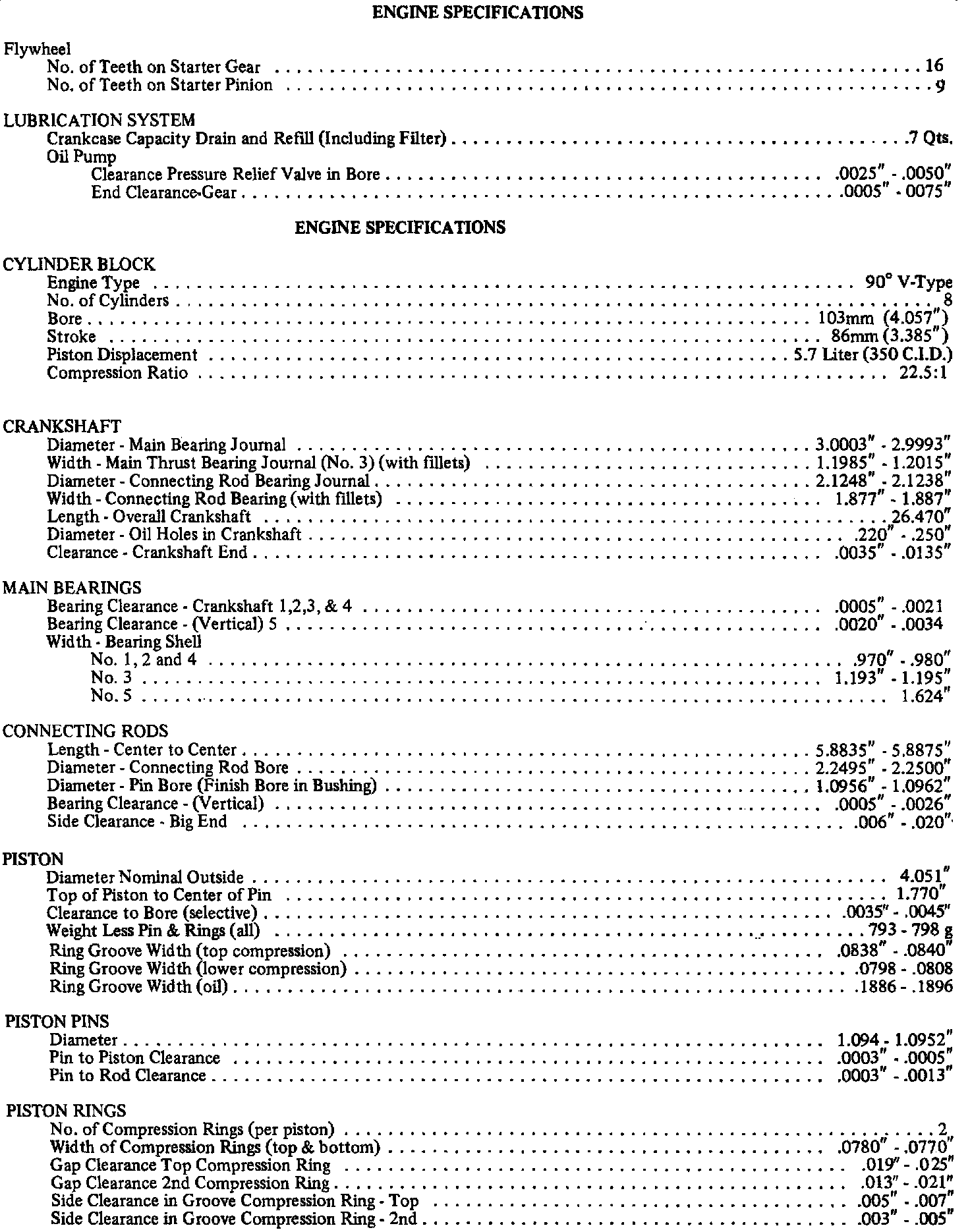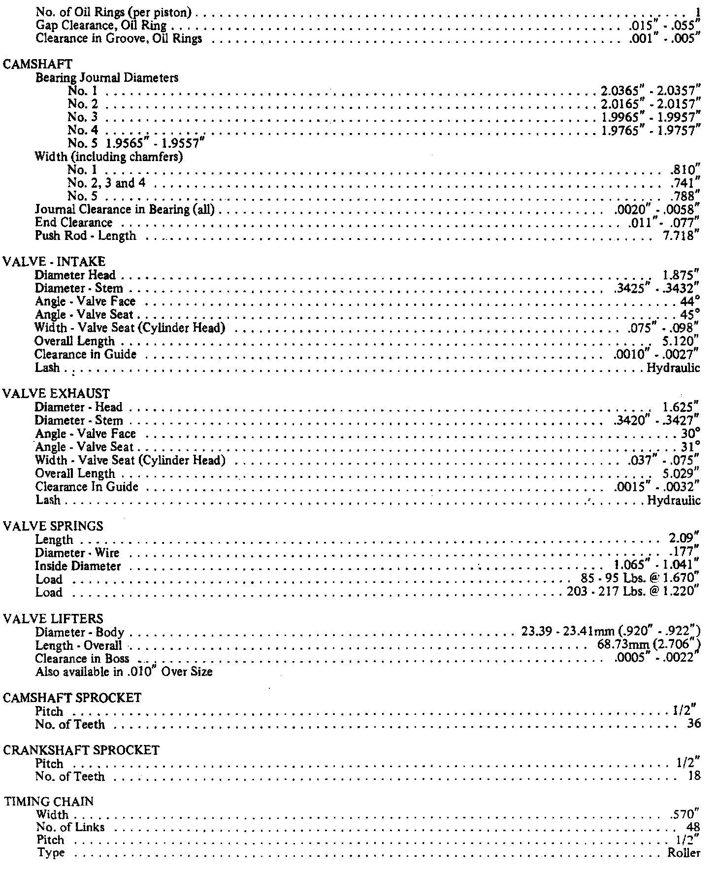 Continued Engine Specifications: