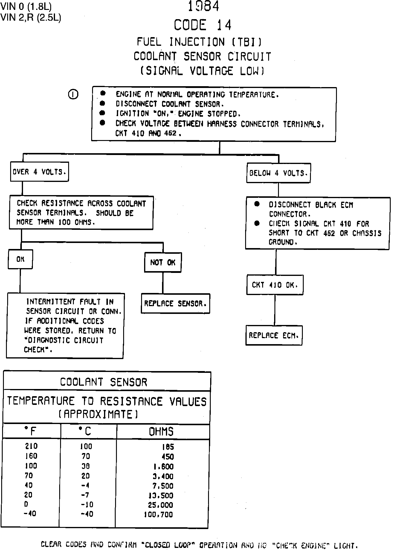 CODE 14, COOLANT SENSOR (SIGNAL VOLTAGE LOW)