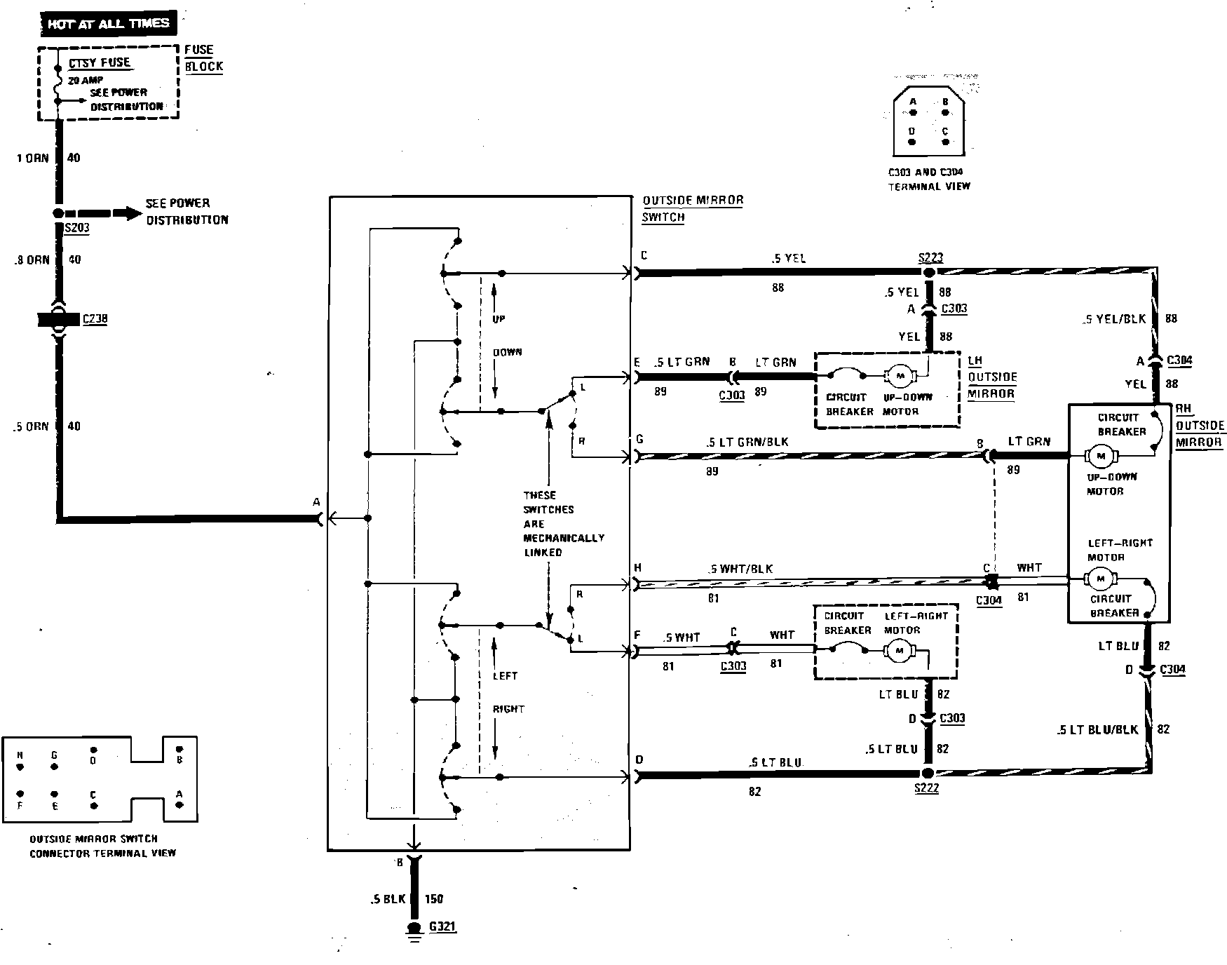 Power Remote Side View Mirrors Wiring Circuit:
