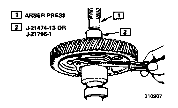 1. If the gear must be removed from the shaft, use press plate and adapter J-971 on press.