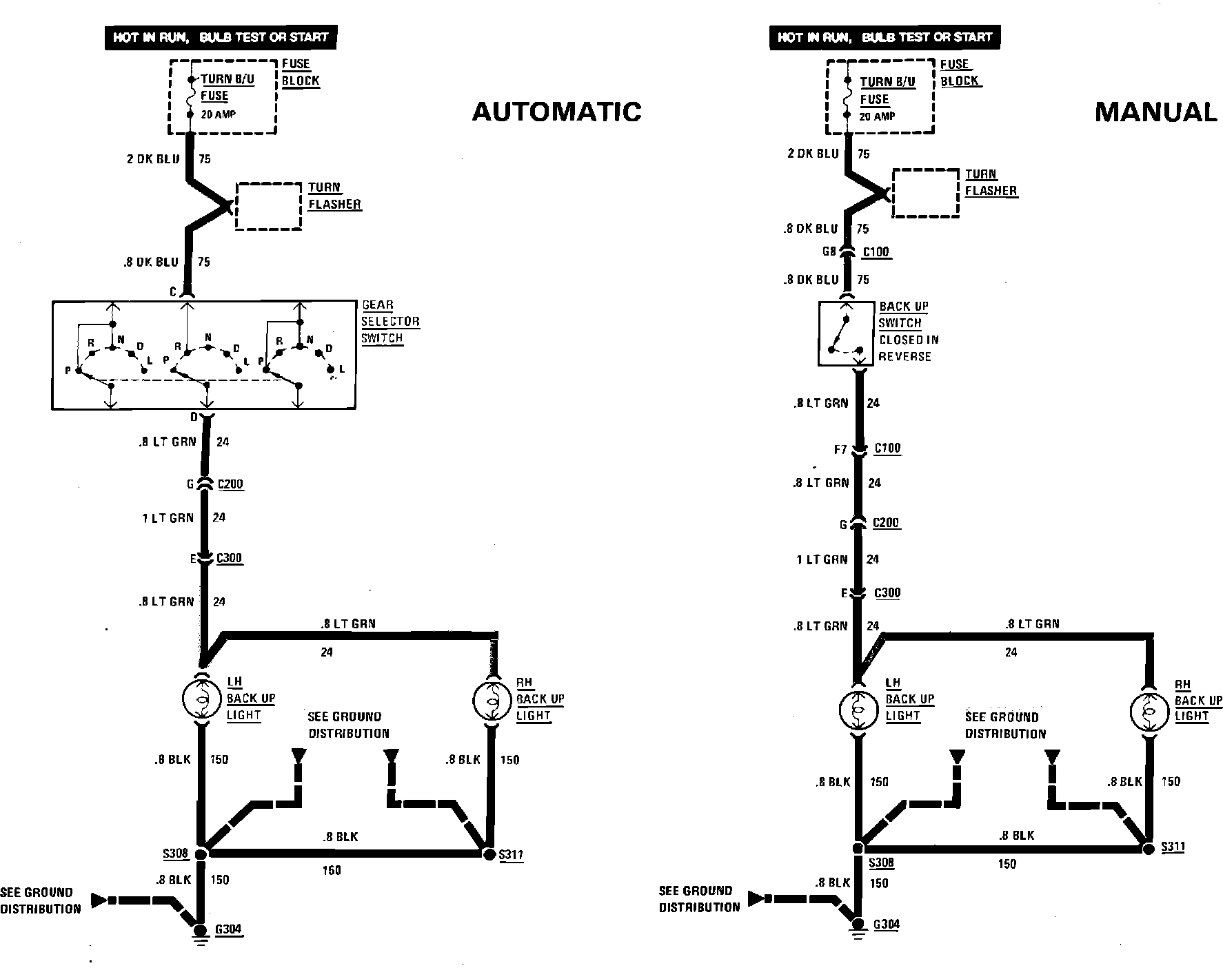 Back-Up Light Wiring Circuit: