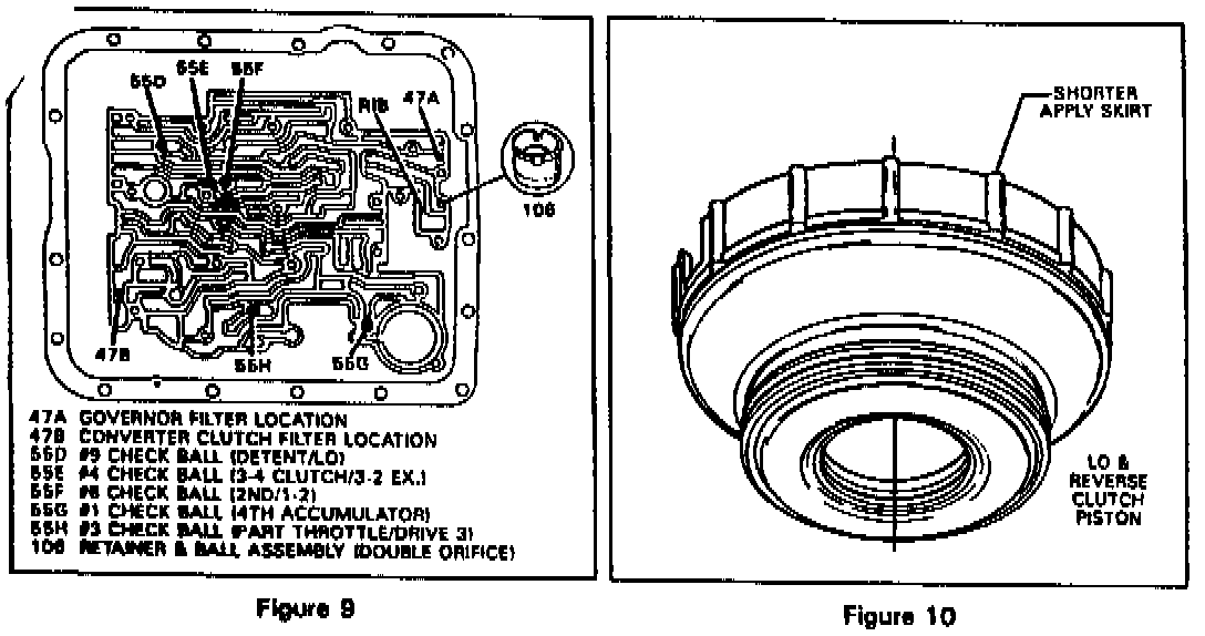 - New lo and reverse clutch piston with shorter apply skirt (Figure 10)