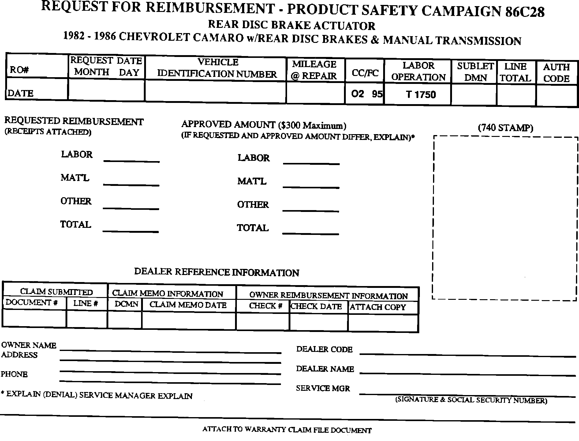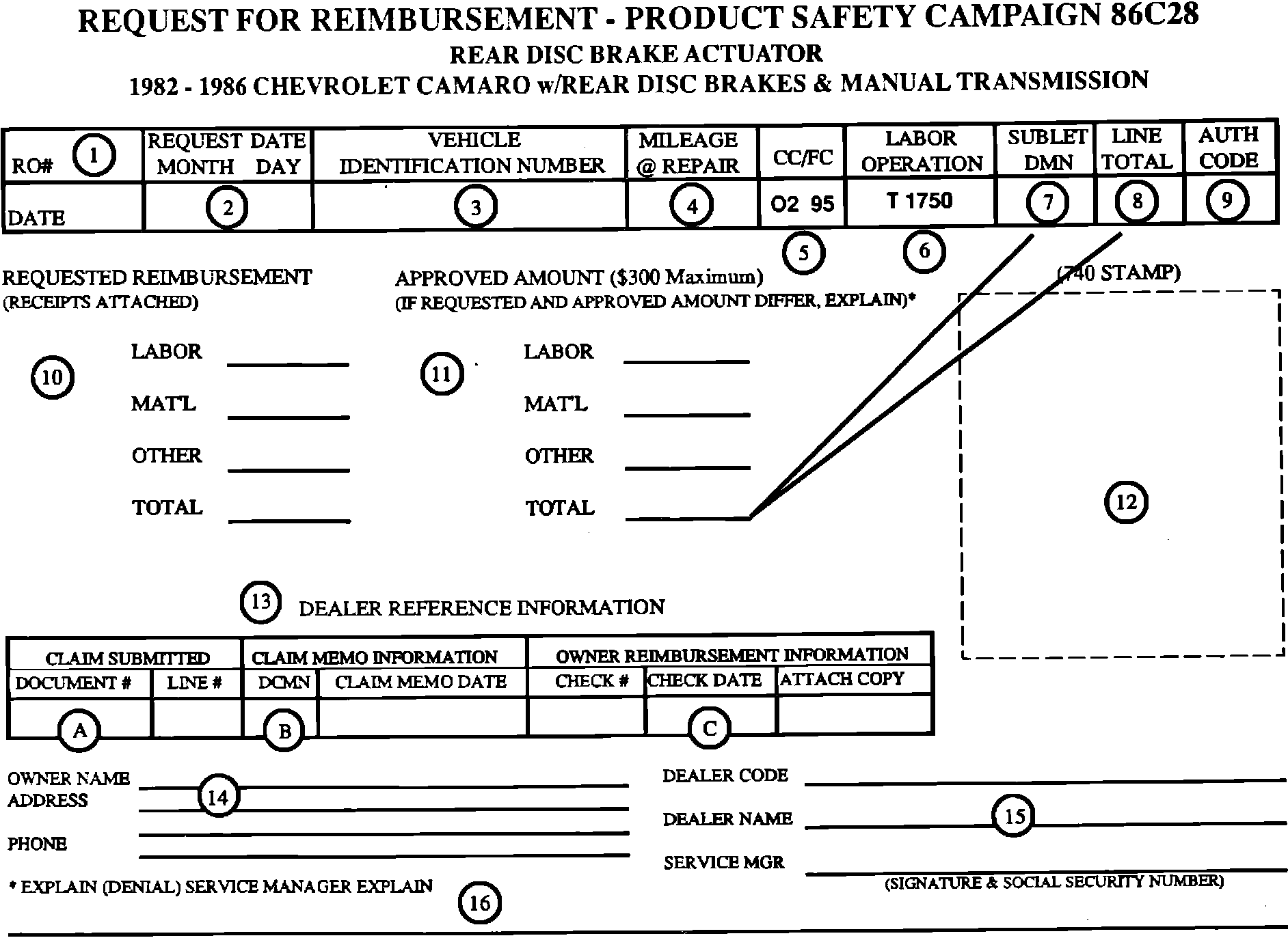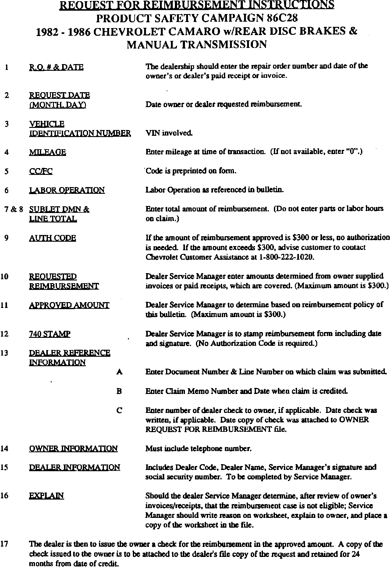 Customer request for reimbursement of a prior repair to correct a previous parking brake adjuster condition are to be submitted according to the instructions in this bulletin using the "Request For Reimbursement" form. Additional copies of the form are to be reproduced by the dealer.