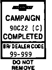 Each vehicle corrected in accordance with the instructions outlined in this Product Campaign Bulletin will require a "Campaign Identification Label." Each label provides a space to include the five (5) digit dealer code of the dealer performing the campaign service. This information may be inserted with a typewriter or a ball point pen.