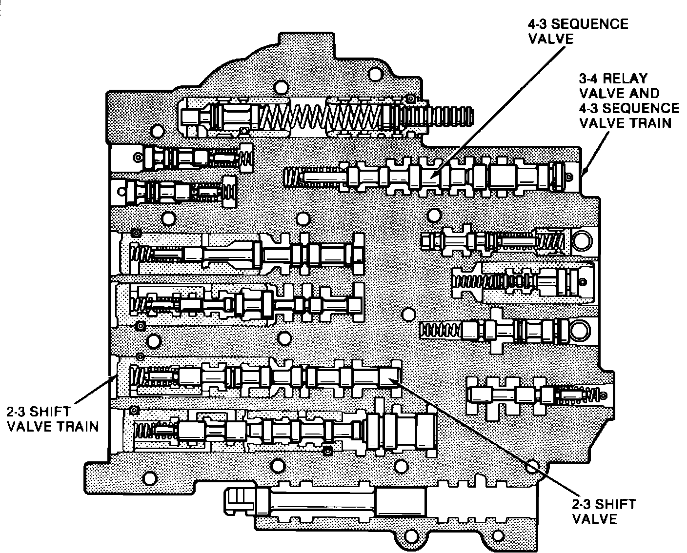 3.. Visually inspect the 4-3 sequence valve and valve train and the 2-3 shift valve and valve train for nicks, burrs, chips and damage (Figure 1).