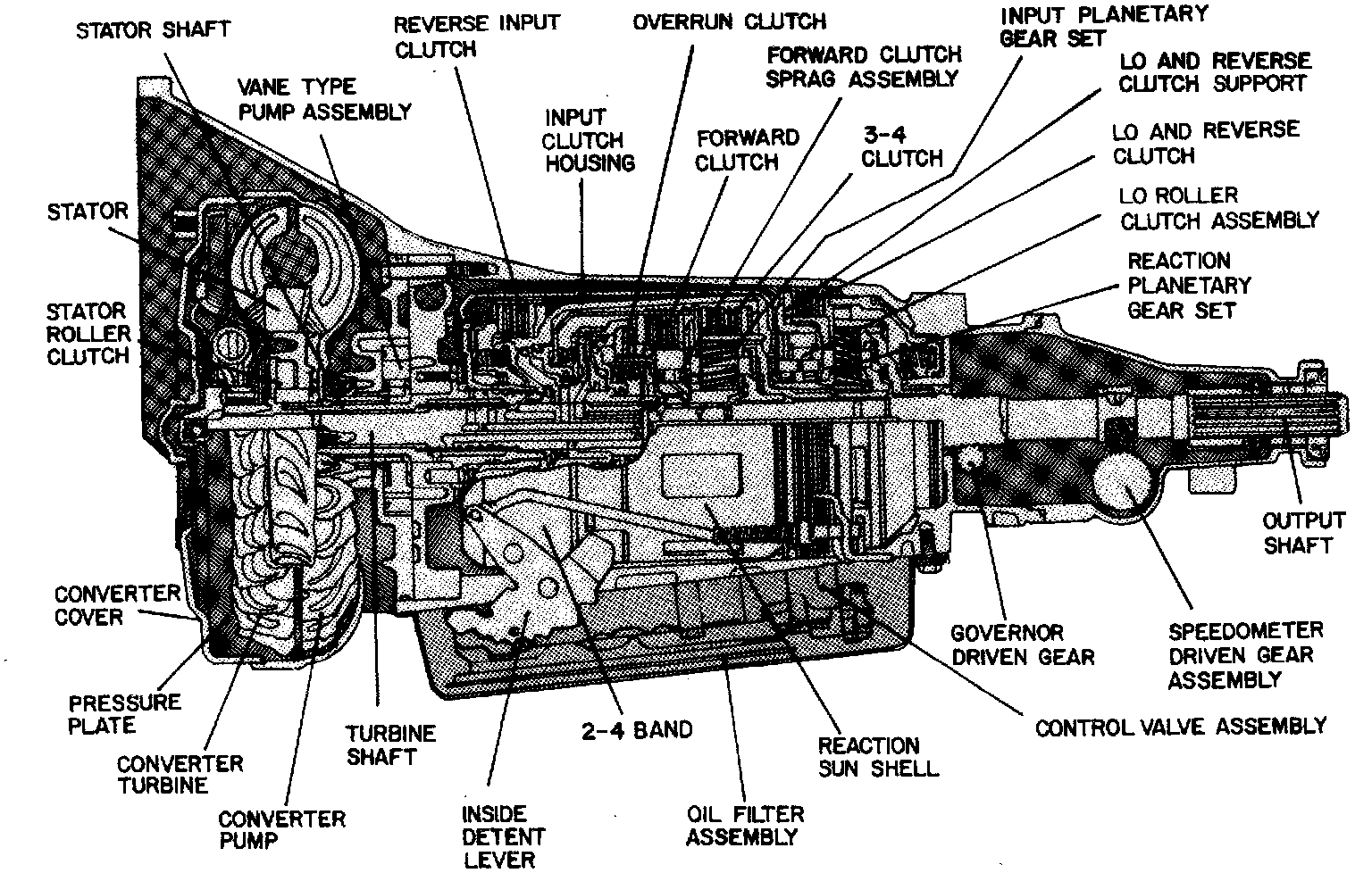 The model 700-R4, is a fully automatic transmission consisting of a 3-element hydraulic torque converter with the addition of a converter clutch.