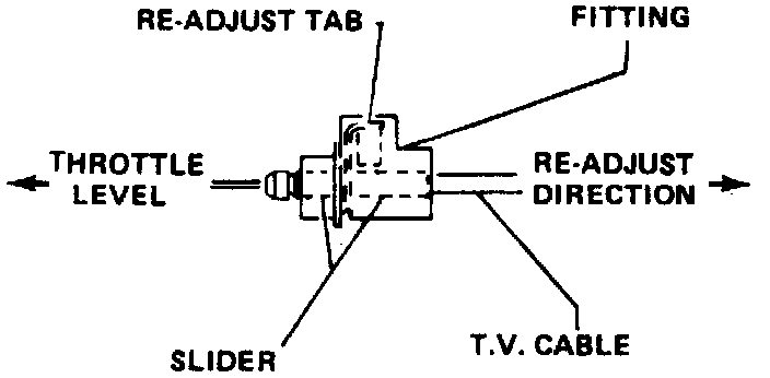 2. Depress readjust tab, and move slider through fitting, away from lever assembly , until slider stops against fitting. Release readjust tab.