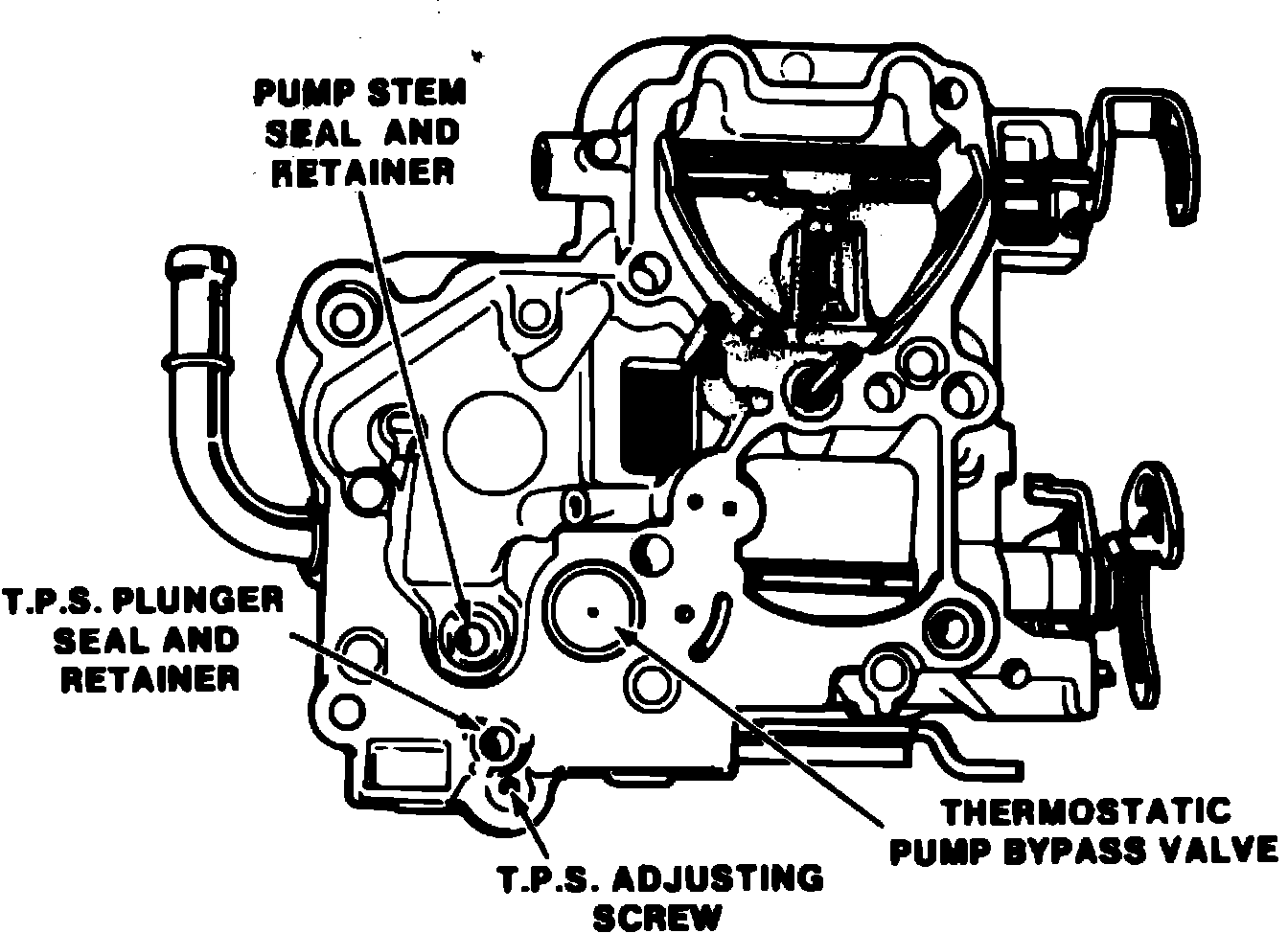 18. If used, remove pump plunger stem seal, Fig. 4, by inverting air horn and using a small screwdriver to remove staking holding the seal retainer in place. Remove and discard retainer and seal. Use care in removing the T.P.S. plunger seal retainer and pump plunger stem seal retainer to prevent damage to air horn casting. New seals and retainers are required for assembly.