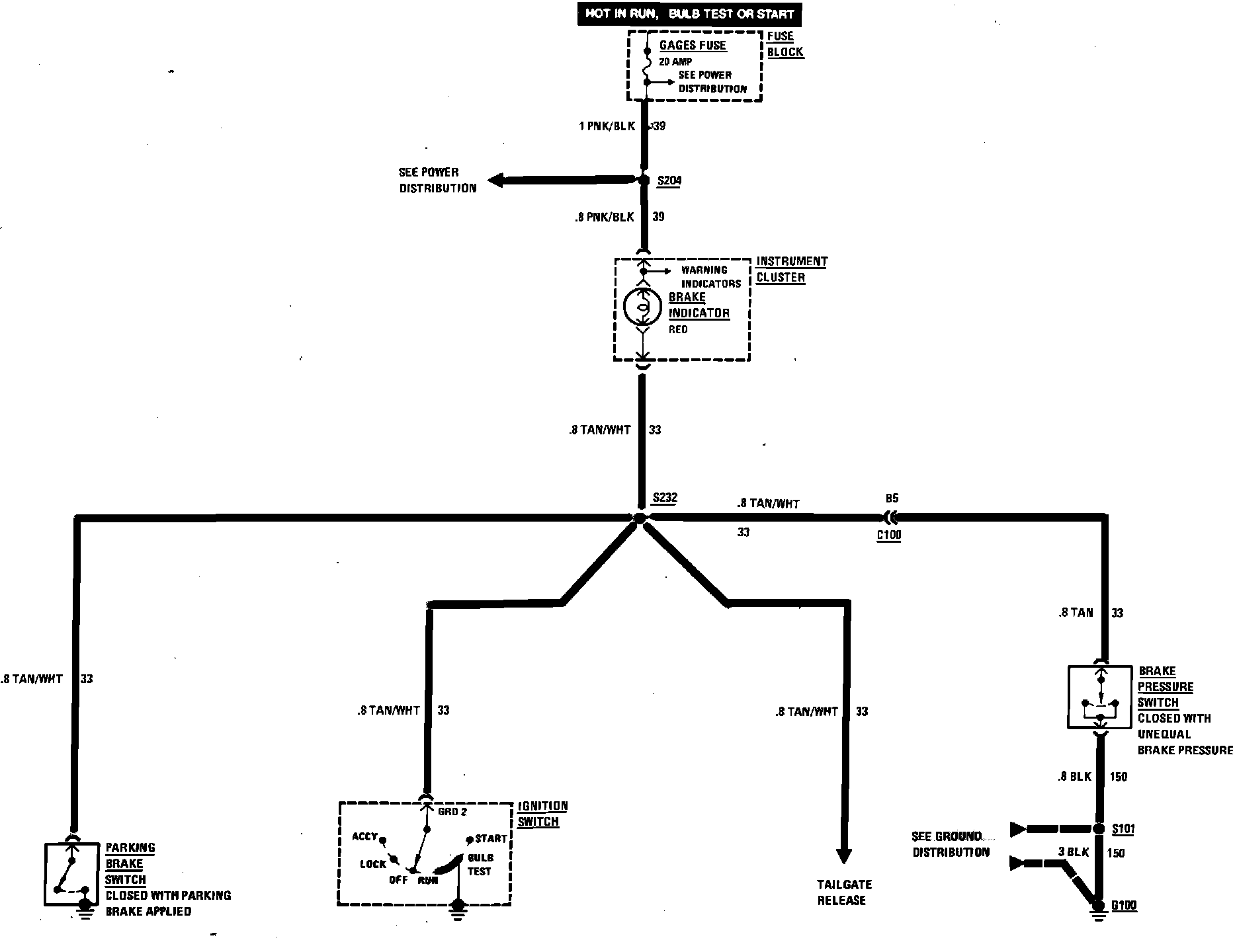 Brake Warning System Wiring Circuit: