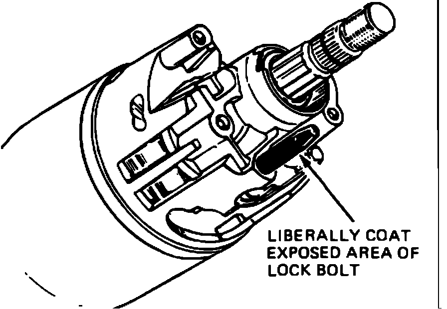 Some 1984-87 Cavalier vehicles equipped with tilt steering columns may exhibit a rattling noise in the column. This noise may be from the lock bolt area and can be repaired by lubricating the lock bolt (See Figure).
