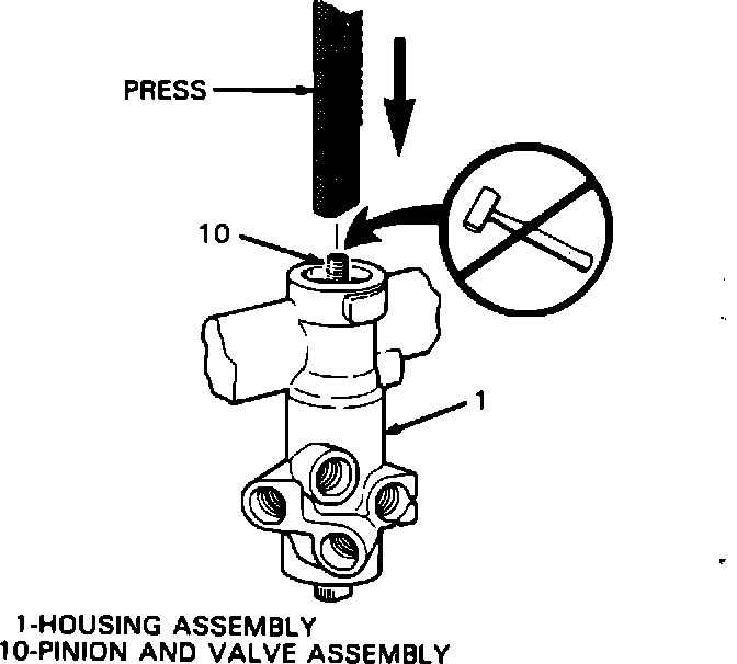 DO NOT hammer or pound on pinion and valve assembly, this could cause damage or loosen the drive pin.