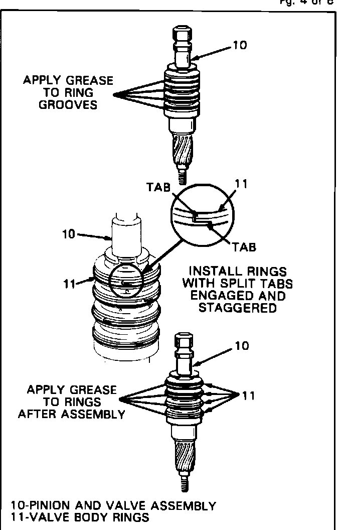 1. Install new valve body rings to pinion and valve assembly. (Care must be taken not to cut rings at installation.)