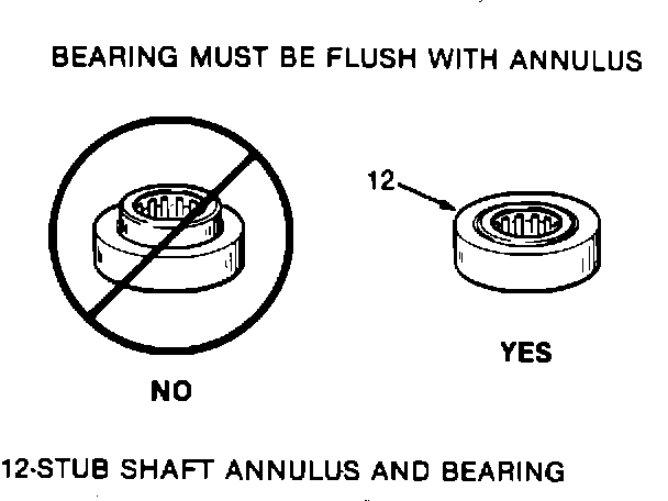Inspect stub shaft bearing annulus for flatness and damage. Clean before reassembly.