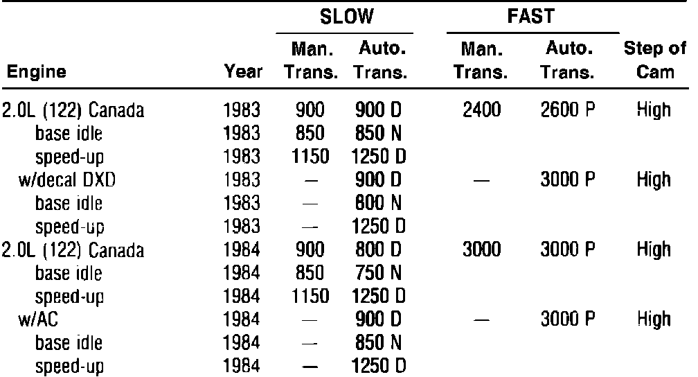 Idle Speed W/O Computer Control - Specifications: