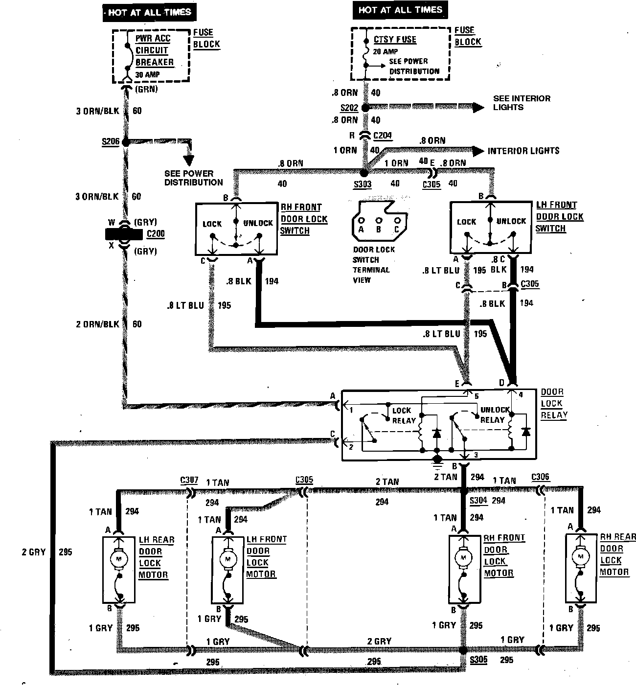 Power Door Locks Wiring Circuit (4 Door):