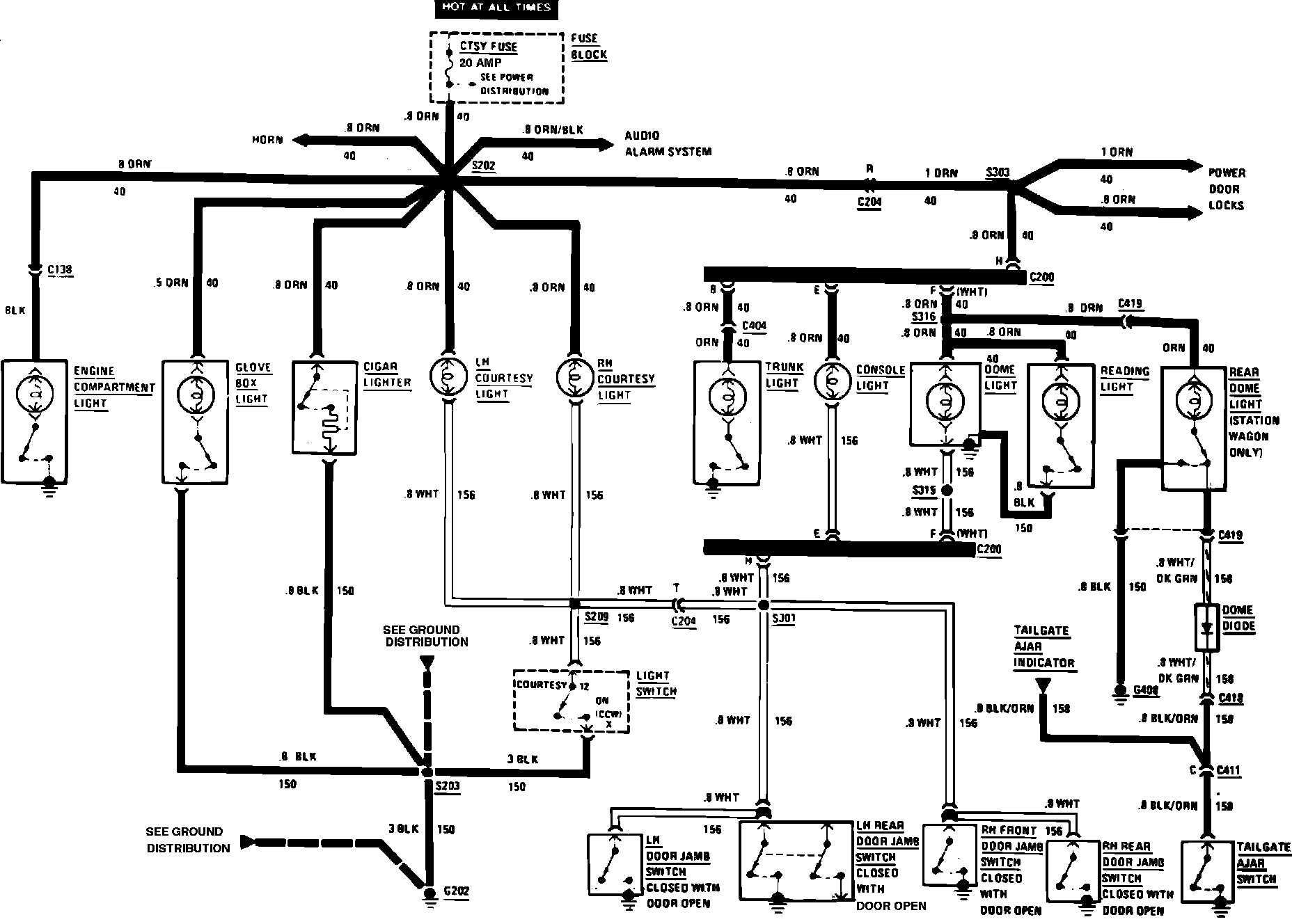 Cigar Lighter & Interior Lighting Wiring Circuit: