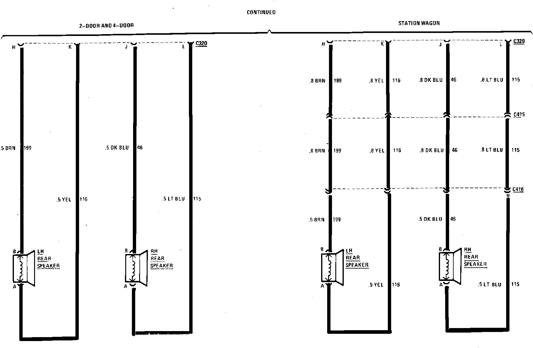 Radio & Speaker Wiring Circuit (Electronic Tuning, Mono & Stereo):