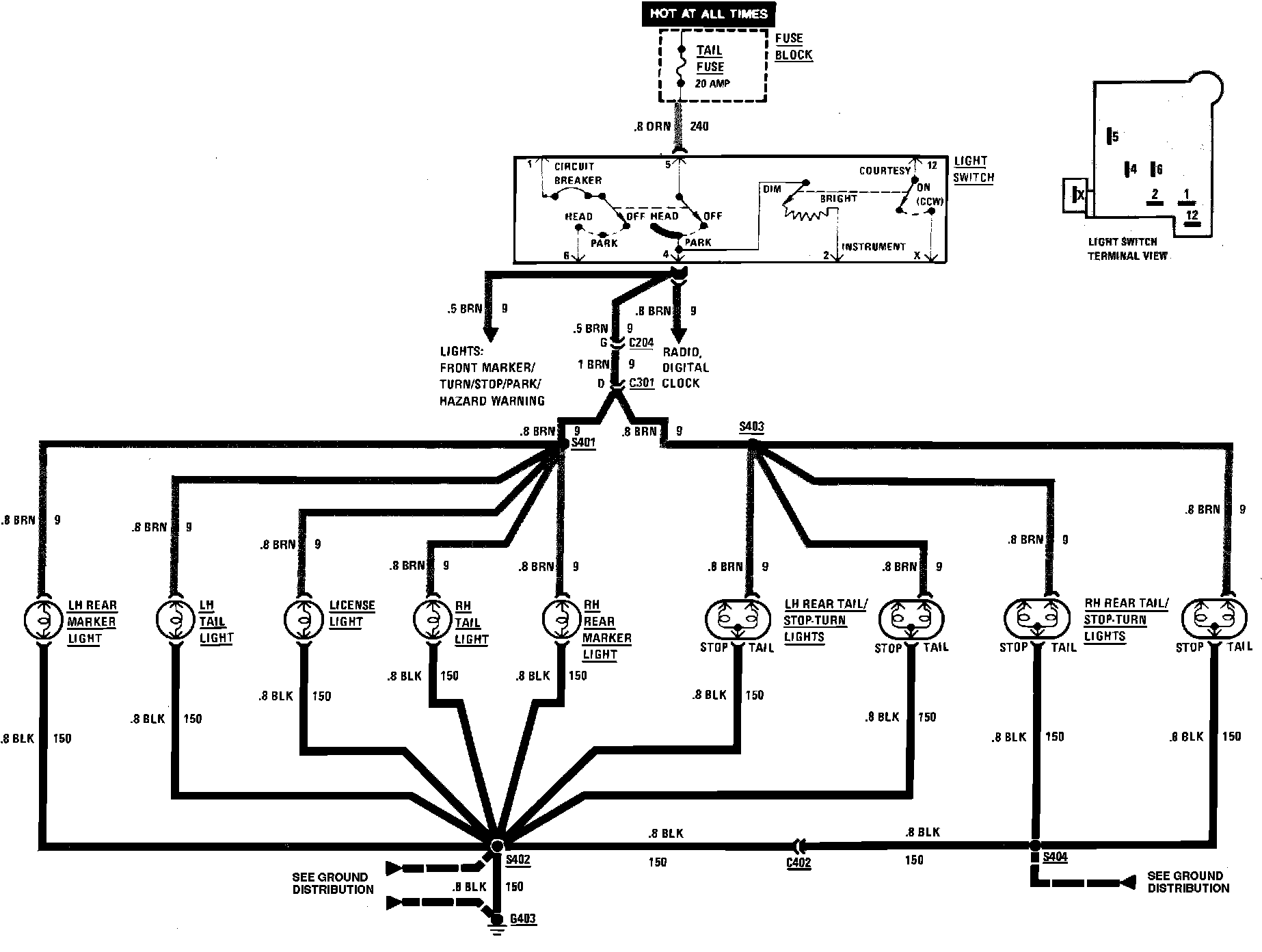 License Plate, Rear Marker & Tail Lamp Wiring Circuit: