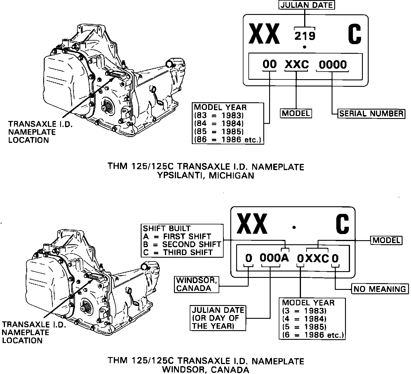 FIGURE 1 - THM 125C TRANSAXLE IDENTIFICATION INFORMATION: