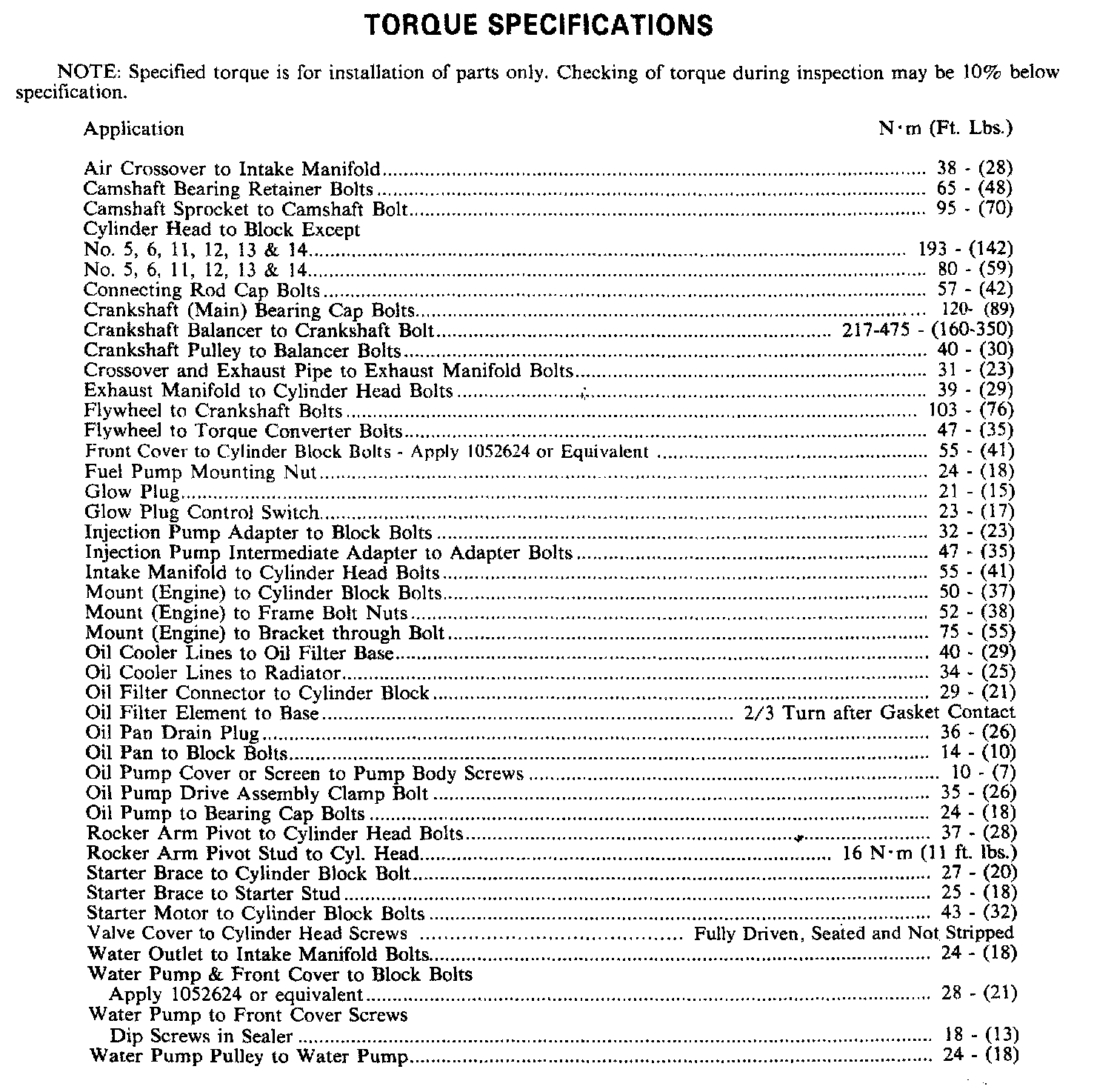 Torque Specifications:
